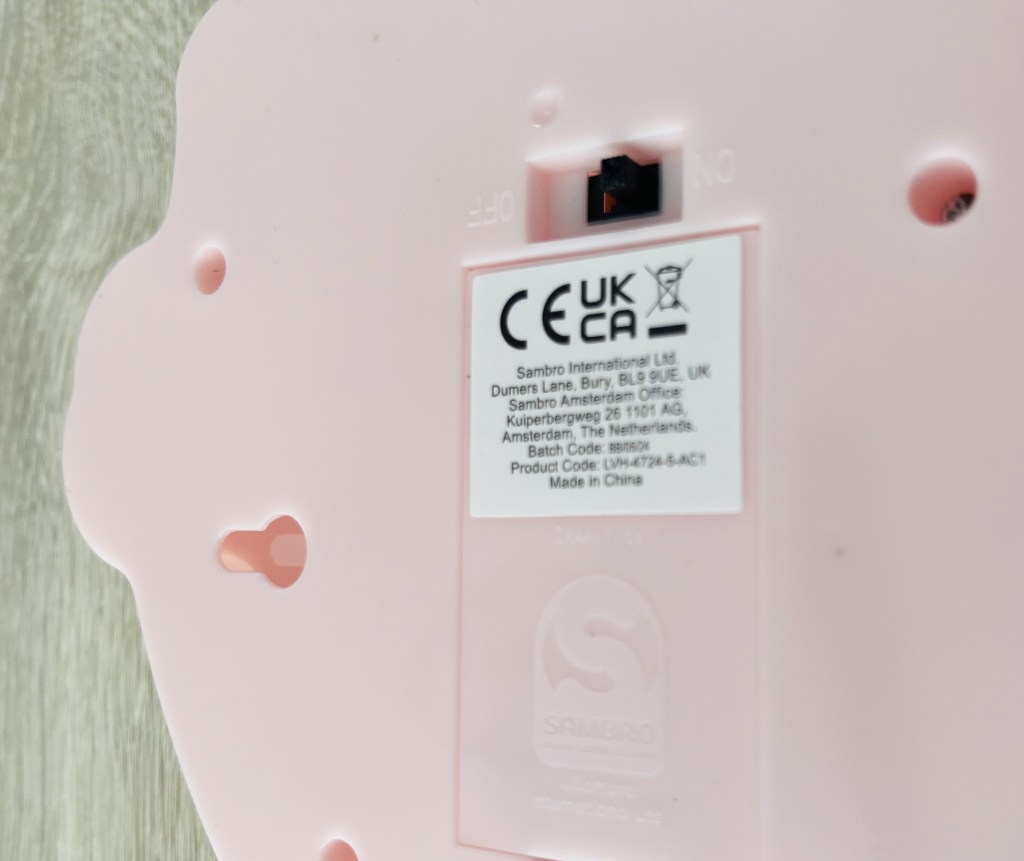 De afmetingen zijn 18.6 x 18.4 x 4 cm en het werkt op basis van batterijen (deze zijn niet meegeleverd).